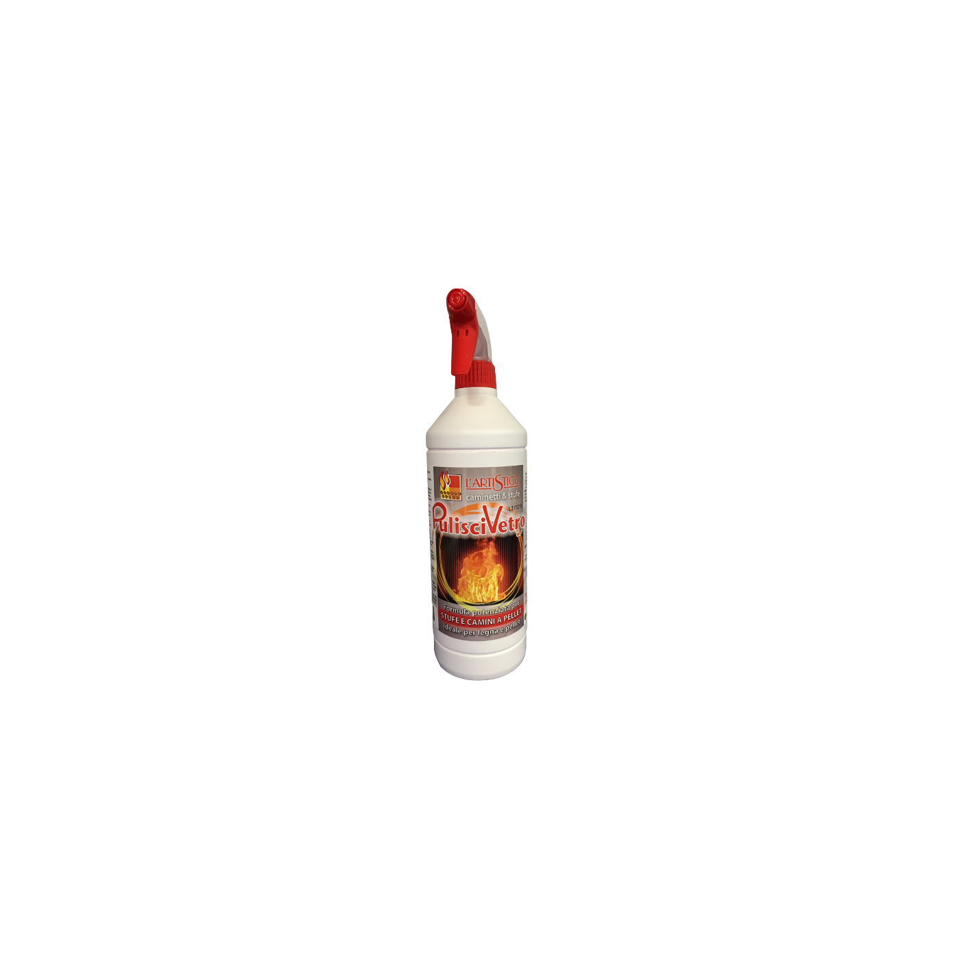 Prodotto detergente per la pulizia dei vetri di focolari, monoblocchi e stufe, elimina i residui e tracce per i quali i detersivi domestici sono inefficaci, sporco da fumo, depositi di catrame e creosoti.